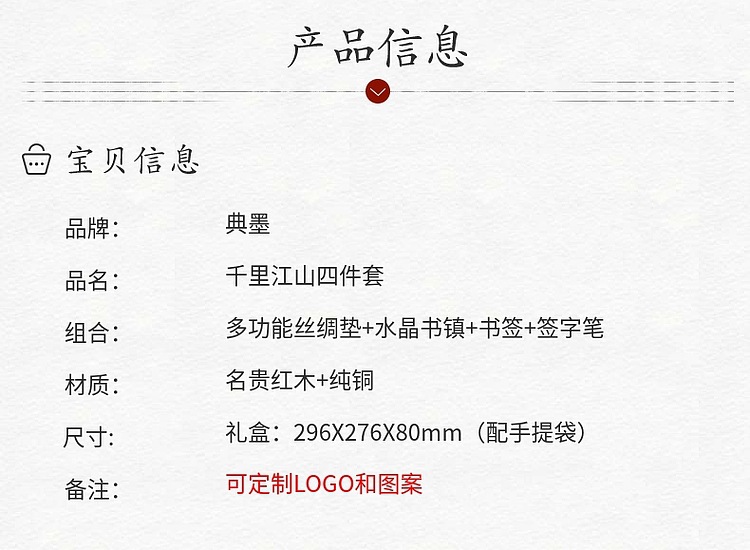 (故宮多功能絲綢墊+香盒+銅木筆筒+簽字筆/鋼筆)